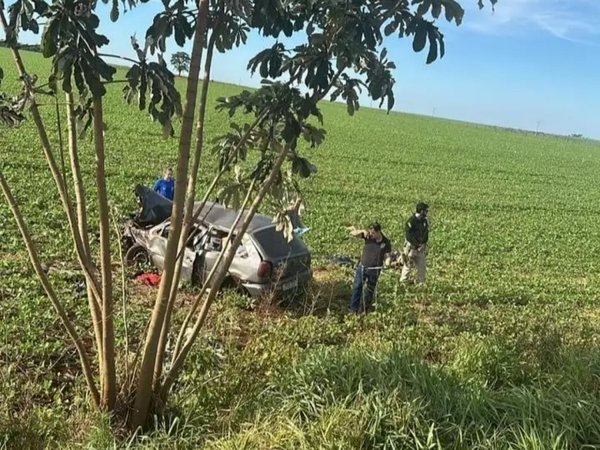 O carro saiu da pista, capotou e parou em uma plantação ao lado da rodovia.